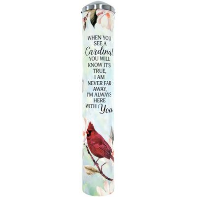 This unique item will make for a lasting keepsake, displayed on a porch, in home or in the garden. Apx 2 foot tall, this painted metal garden pole depicts images of cardinals and flowers and a sympathy phrase.