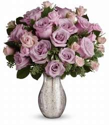 A sparkling mercury glass vase lends a feeling of vintage romance to one dozen delicate lavender roses. It's a bouquet as timeless as your love - and one she'll always remember! Approx. 12 1/2 W x 16 H